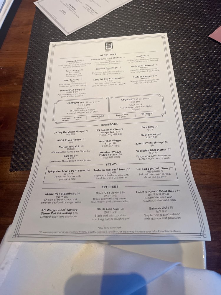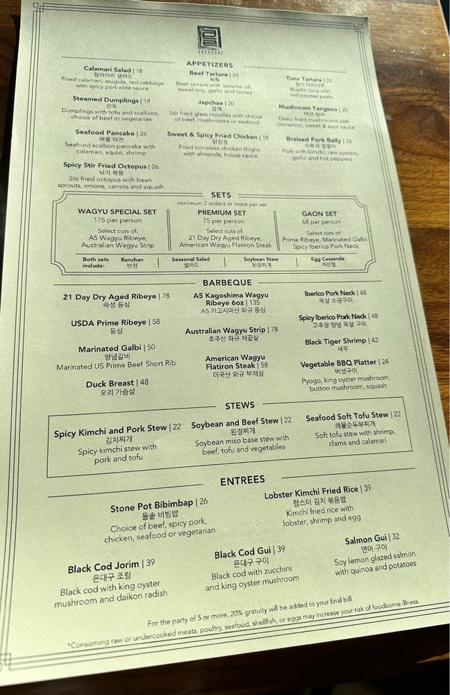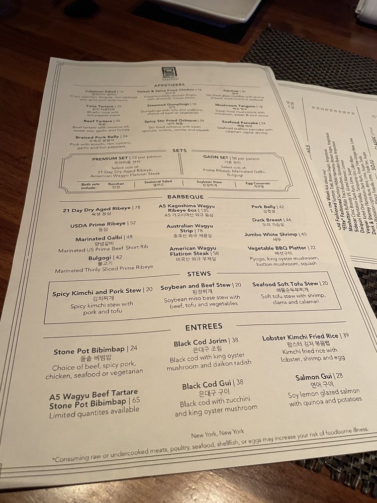 Gaonnuri is an upscale Korean BBQ and cocktail bar located in New York City, offering breathtaking views of the city skyline. Known for its exceptional food and service, Gaonnuri caters to those looking for a special dining experience. With options for pescatarians, vegans, and vegetarians, the menu is diverse and flavorful. Customer reviews rave about the braised pork belly, kimchi radish, Gaon Set, and premium ribeye. The restaurant offers a pre-set menu for groups, ensuring a delightful dining experience. The ambiance, coupled with attentive staff and a wide selection of drinks, makes Gaonnuri a must-visit destination for those seeking a memorable evening. Make sure to reserve in advance and enjoy the upscale atmosphere while indulging in delicious Korean dishes.